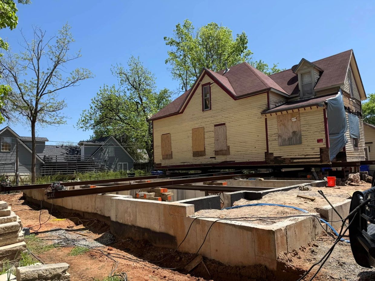 On Oklahoma University Campus moving the original President’s House onto a New Foundation. Built in 1893, moved to this location in 1930’s, and now moved onto a permanent foundation to live another 100+ years!